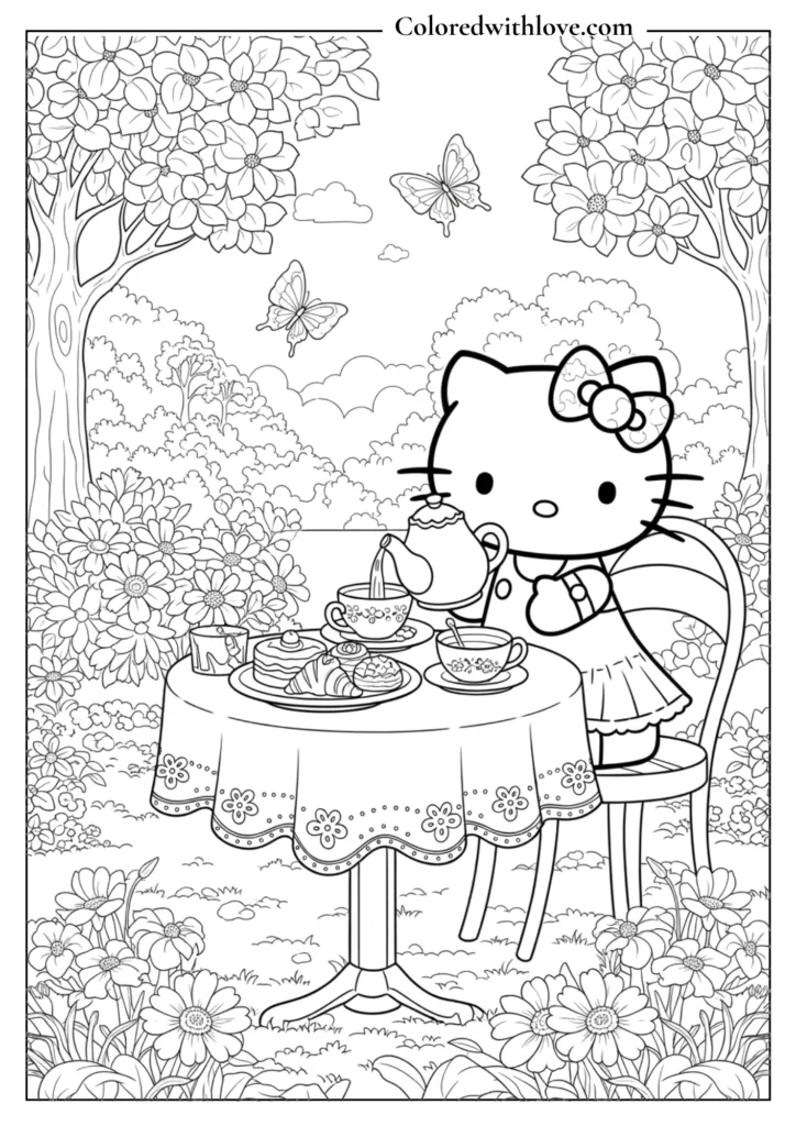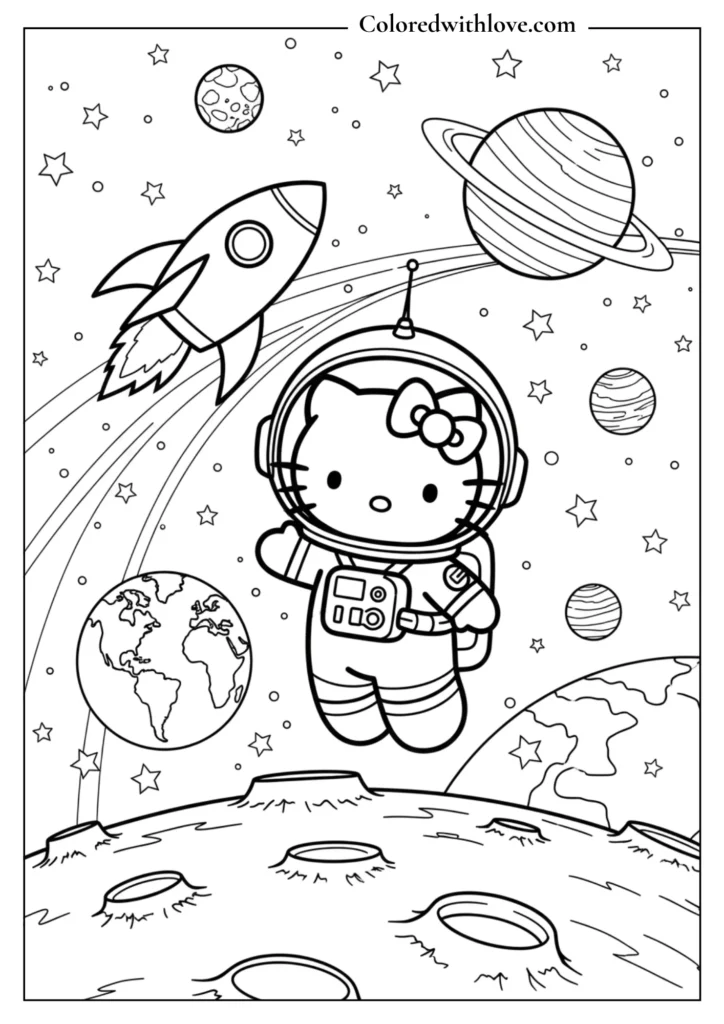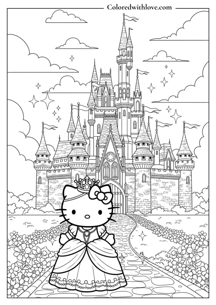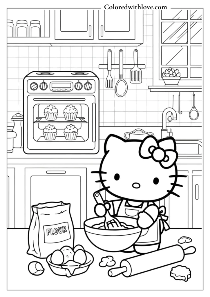 Kids love Hello Kitty Coloring Pages because they bring together cuteness, creativity, and imagination in one fun activity. Hello Kitty appears in magical castles, space adventures, birthday parties, and sweet baking scenes, allowing children to explore different worlds while expressing their own style through color.